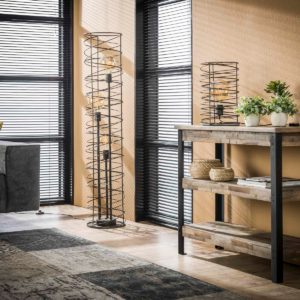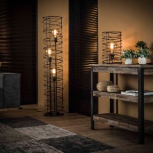 Deze vloerlamp met drie fittingen is uitgevoerd in een cilindervormige spiraal. Dit geeft de lamp een eigentijdse, trendy uitstraling. Deze authentieke lamp, afgewerkt in de kleur charoal, is een echte must have! Door het open armatuur komen de lichtbronnen zichtbaar tot hun recht en wordt het licht mooi gedoseerd door de ruimte verdeeld.