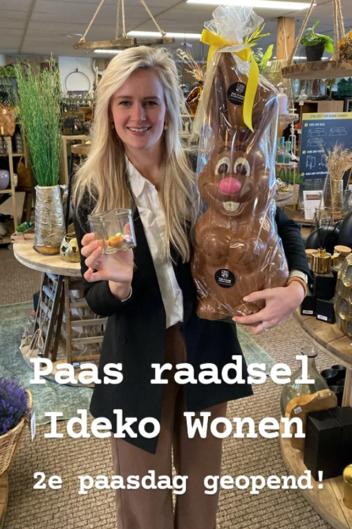 Doe mee aan ons paasraadsel op onze >>FACEBOOK pagina! Hoeveel paaseieren zitten er in het glazen potje? De winnaar wordt 2e paasdag bekend gemaakt. Maak kans op een waardebon van €100 of de mega chocolade paashaas van 4 kilo!